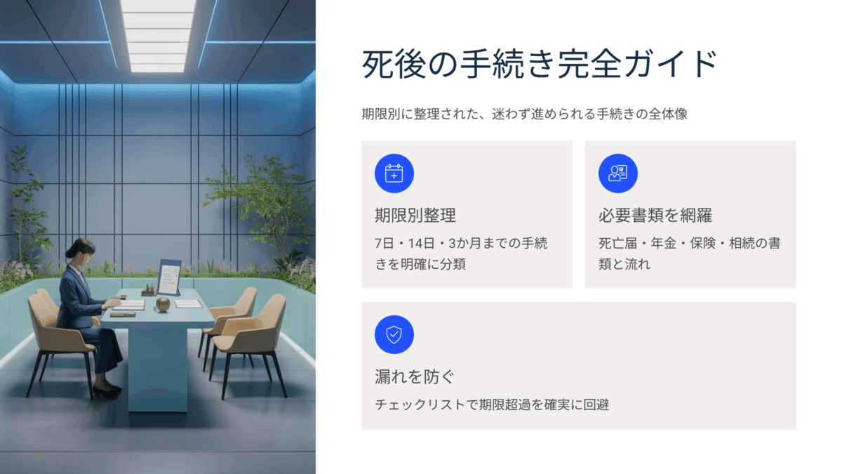 悲しみの中であっても、「この順番で動けば大丈夫」という安心感が少しずつ心を支えてくれるはずです。
